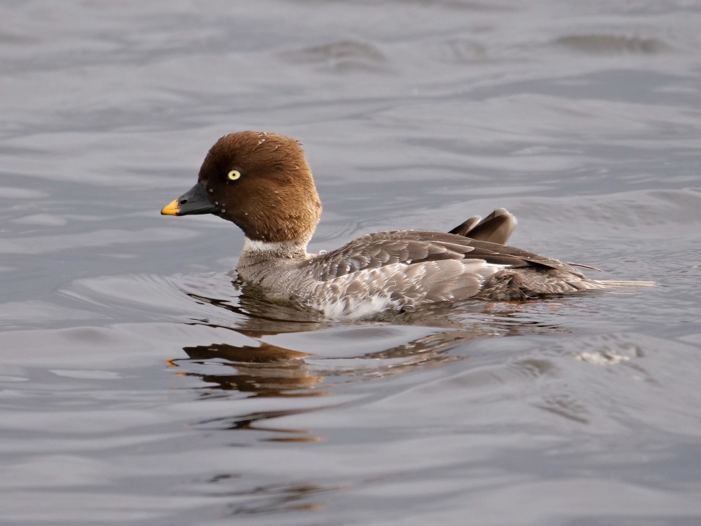 Halverwege de Afsluitdijk vond ik een Roodkeelduiker na getipt te zijn door een vriendelijk man uit Groningen. Ik was al in Den Oever dus ik was snel t.p. en vond hem ook snel aan de Wadkant bij Breezanddijk. Natuurlijk niet zo mooi kleurrijk als in het zomerkleed, maar toch een prachtig beest en goed aangepast om vissen te vangen: ligt laag op het water en de poten ver naar achteren geplaatst. Had een klein olievlekje op de borst en hopelijk wordt hem dat niet noodlottig. Was flink actief.